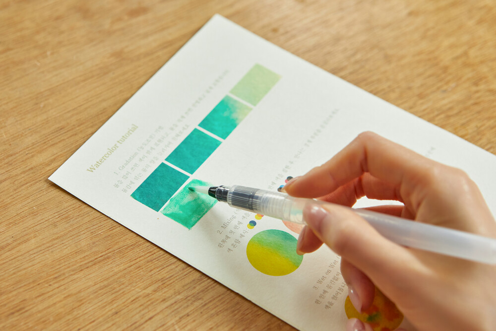 내부에 물을 채워 넣어 언제 어디서든 별도의 물통없이 수채화를 즐길 수 있게 해줍니다.