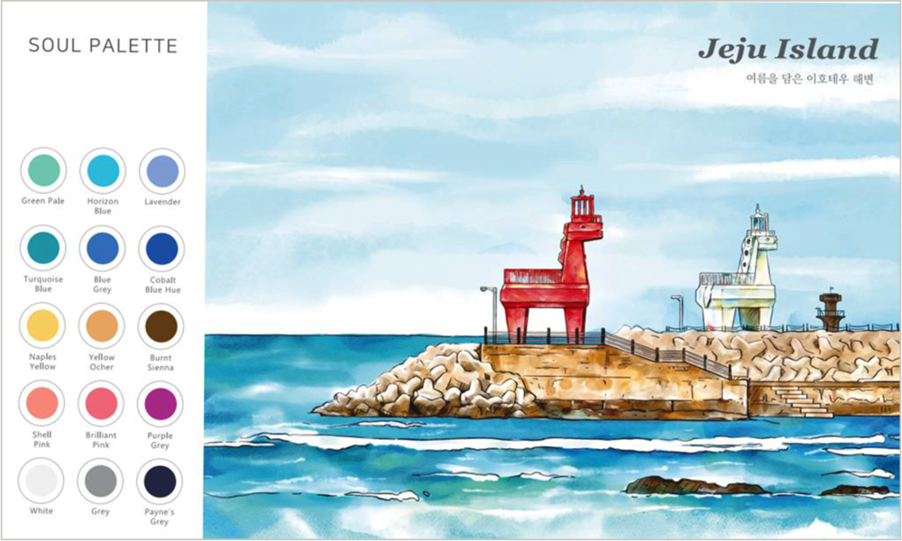 소울팔레트에는 연한 밑그림과 함께 왼쪽 편에 필요한 색감의 물감이 짜져있습니다.