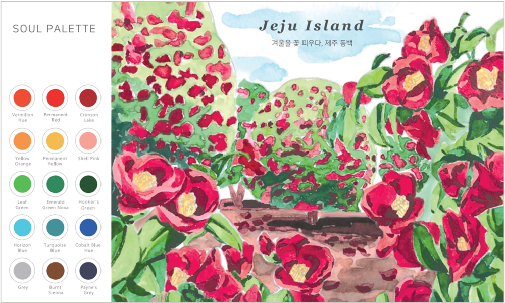 소울팔레트에는 연한 밑그림과 함께 왼쪽 편에 필요한 색감의 물감이 짜져있습니다.
