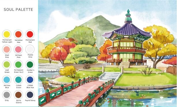 소울팔레트에는 연한 밑그림과 함께 왼쪽 편에 필요한 색감의 물감이 짜져있습니다.