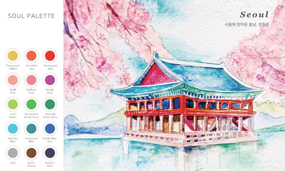 소울팔레트에는 연한 밑그림과 함께 왼쪽 편에 필요한 색감의 물감이 짜져있습니다.