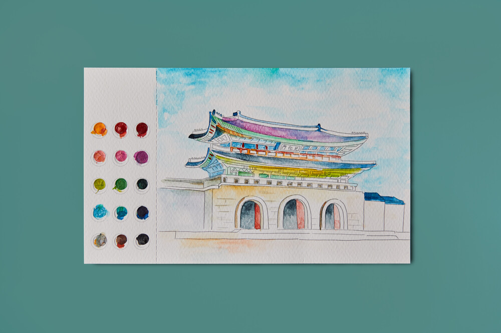 라인 안을 물감으로 자유롭게 채웁니다. 밝은 색상부터 칠하면 좋습니다. 샘플 트레이싱지를 참고하여 따라 칠하거나, 나만의 감성대로 색을 채워나가면 됩니다.