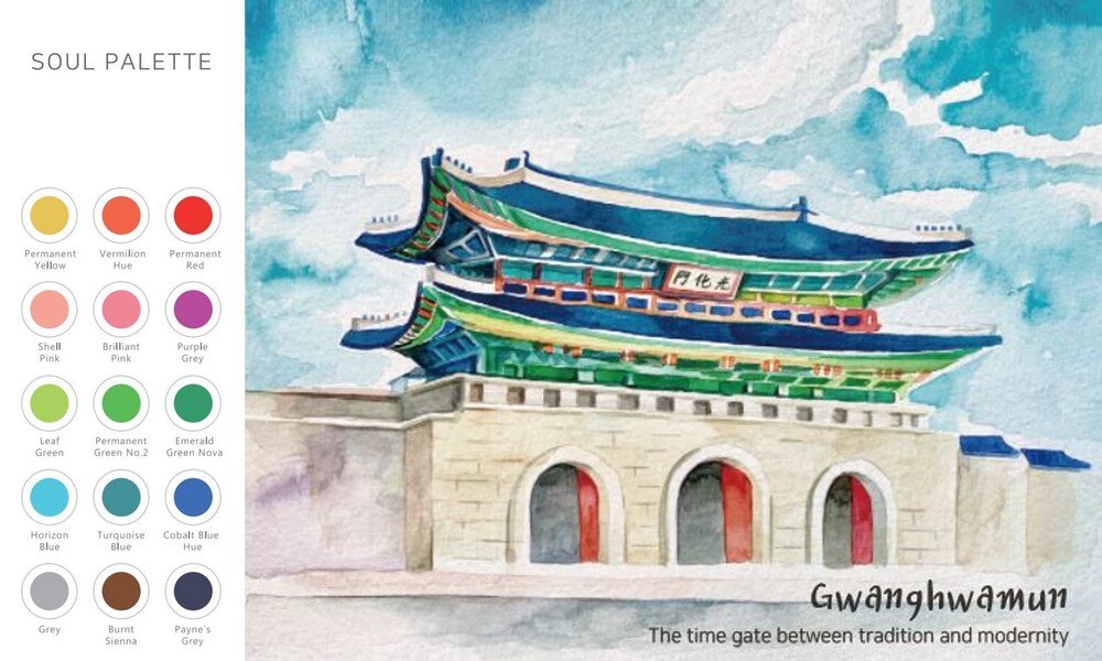 소울팔레트에는 연한 밑그림과 함께 왼쪽 편에 필요한 색감의 물감이 짜져있습니다.