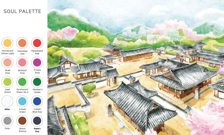 소울팔레트에는 연한 밑그림과 함께 왼쪽 편에 필요한 색감의 물감이 짜져있습니다.