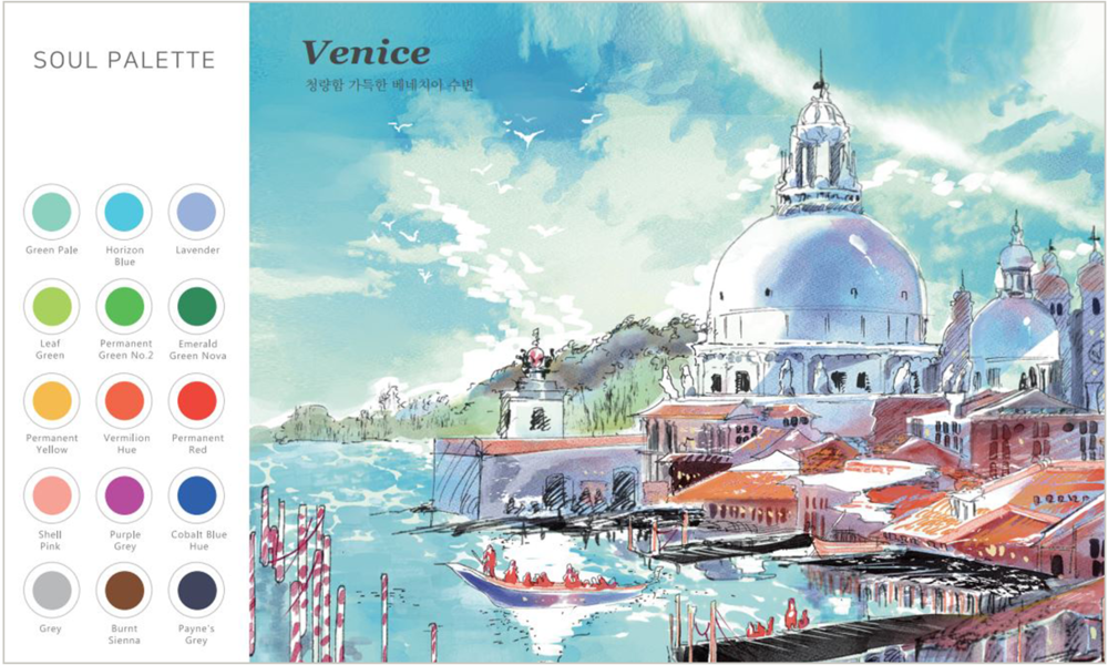 소울팔레트에는 연한 밑그림과 함께 왼쪽 편에 필요한 색감의 물감이 짜져있습니다.
