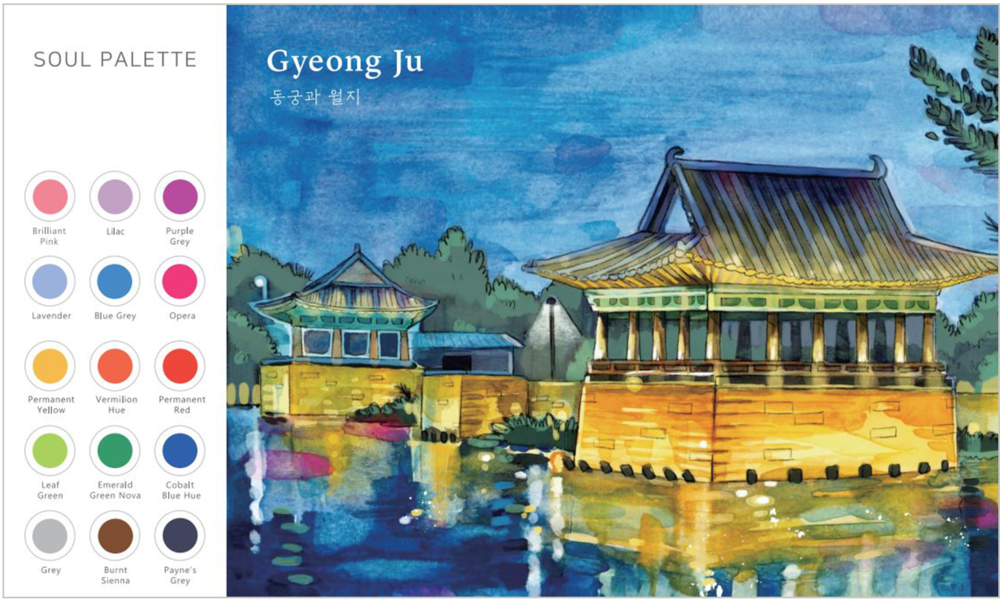 소울팔레트에는 연한 밑그림과 함께 왼쪽 편에 필요한 색감의 물감이 짜져있습니다.