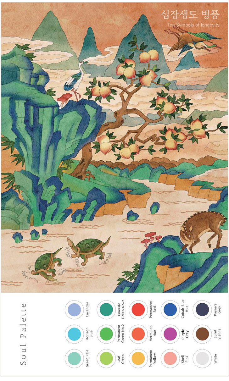 소울팔레트에는 연한 밑그림과 함께 왼쪽 편에 필요한 색감의 물감이 짜져있습니다.