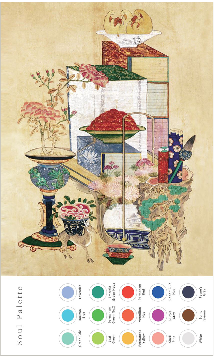 소울팔레트에는 연한 밑그림과 함께 왼쪽 편에 필요한 색감의 물감이 짜져있습니다.