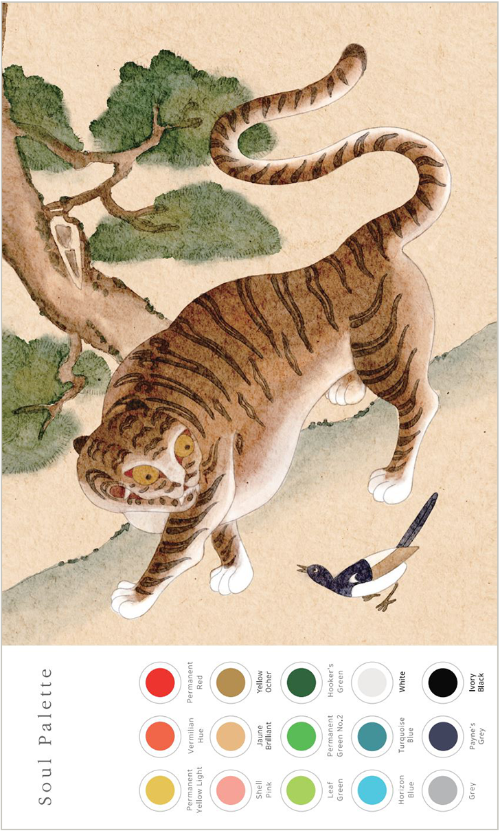 소울팔레트에는 연한 밑그림과 함께 왼쪽 편에 필요한 색감의 물감이 짜져있습니다.