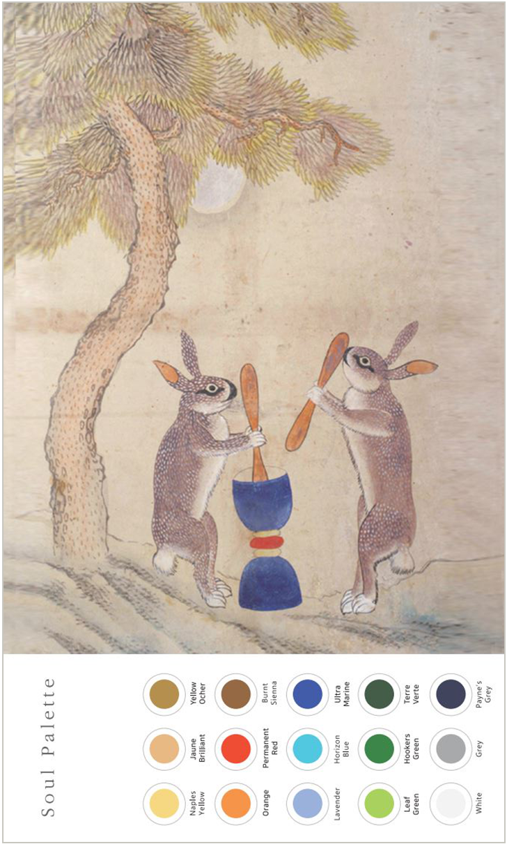 소울팔레트에는 연한 밑그림과 함께 왼쪽 편에 필요한 색감의 물감이 짜져있습니다.