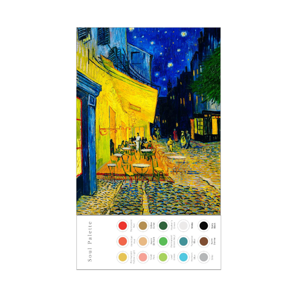 소울팔레트에는 연한 밑그림과 함께 왼쪽 편에 필요한 색감의 물감이 짜져있습니다.