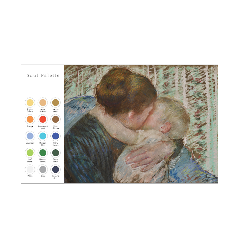 소울팔레트에는 연한 밑그림과 함께 왼쪽 편에 필요한 색감의 물감이 짜져있습니다.