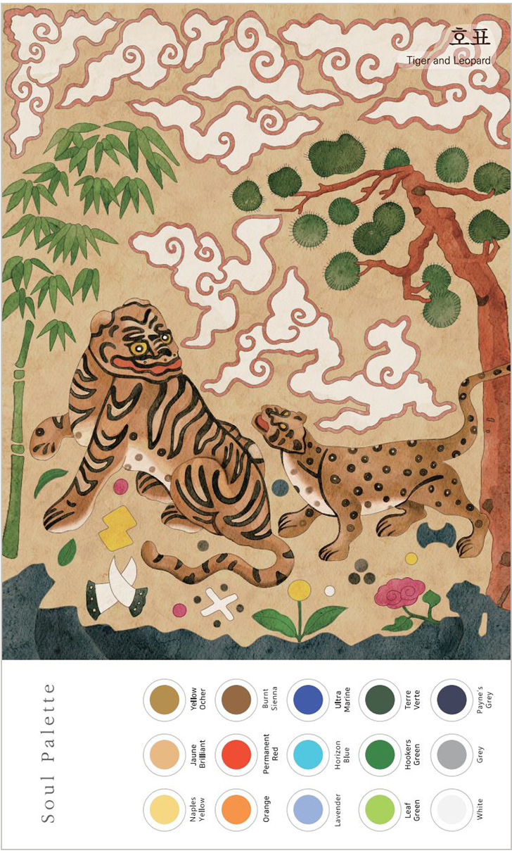 소울팔레트에는 연한 밑그림과 함께 왼쪽 편에 필요한 색감의 물감이 짜져있습니다.